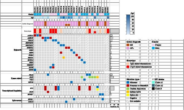 通过对患者来源TTMV序列与全球数据库比对,发现:大部分APL相关的TTMV病毒株不属于已定义的38个TTMV种,属于尚未被定义的病毒种;儿童与成人患者的病毒株分布存在差异,提示可能存在复杂的病毒-宿主互作机制。